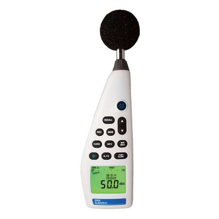 A single dynamic 30 ~ 130db range eliminates the need to manually select ranges and prevents data errors during range changes in auto-ranging models. All test parameters are simultaneously displayed on a large bright back-lit display featuring 0.1 dB resolution and a bar graph. This is the ideal meter for doing basic testing within rooms, or for work safe applications prior to calling in an acoustic consultant.