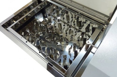 The bath is supplied with a standard flat drilled tray which accommodates various flask clip sizes. A universal tray with springs
