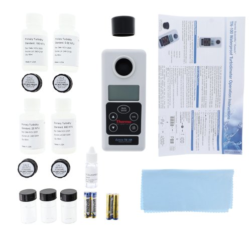 - Compact case contains all items necessary for turbidity measurements and protects the meter when not in use. Contents include turbidity meter, four primary calibration standards, three borosilicate sample cuvettes with light shield caps, collection bottle, lint-free cloth, silicone oil, and batteries.