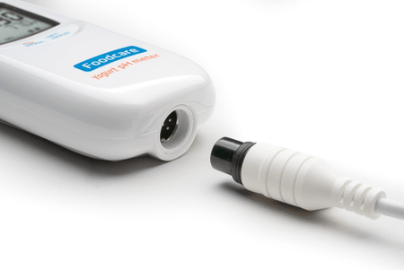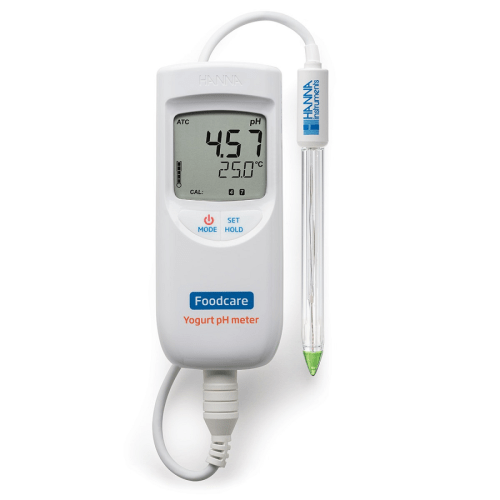 The Hanna Instruments HI99164 is a durable, waterproof, and portable Foodcare pH and temperature meter designed specifically for yogurt analysis. Automatic calibration is performed at one or two points with two sets of buffers. All calibration and measurement readings are automatically compensated for temperature variations.