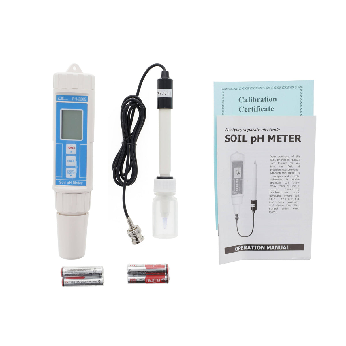 Soil pH Meter with Separate Electrode & buffer solutions - PH220S-KIT