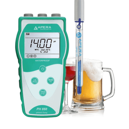 The PH850-BR Portable pH Meter is designed for professional pH measurement of for beverage making, such as beer, wine, kombucha, coffee, juice, etc.