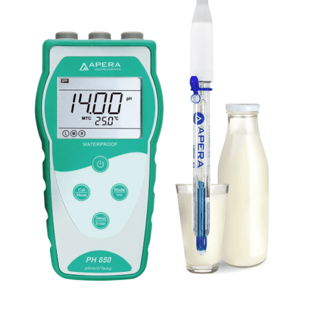 The PH850-DP Portable pH Meter is designed for professional pH measurement of dairy products (milk, yogurt, buttermilk cream, etc.) and other liquid food such as jam, BBQ sauce, syrup, etc.