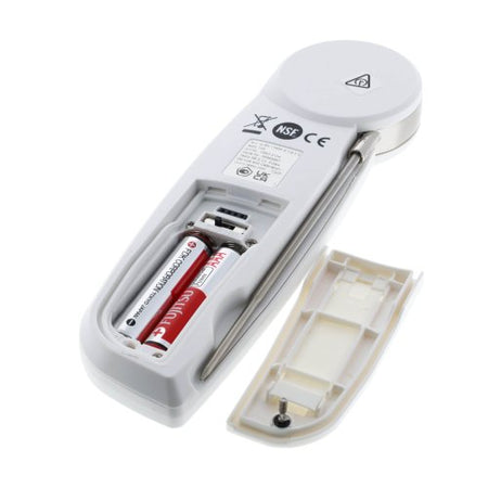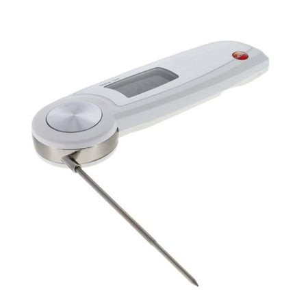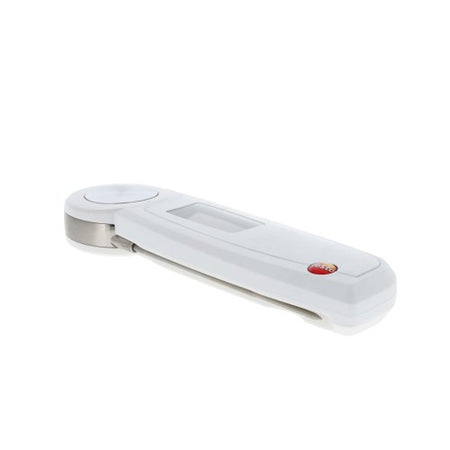 The folding thermometer testo 104 measures food temperatures precisely at any time in production, storage and processing, in gastronomy, supermarket chains, food retail and wholesale, or in industrial areas. The testo 104 already begins measurement from a fold-out angle of 30 degree, and can therefore be used flexibly. After measurement, the probe can be simply folded away, and the instrument stored safely until the next measurement for example in a trouser pocket. The folding thermometer testo 104 is compliant with HACCP and EN 13485.
