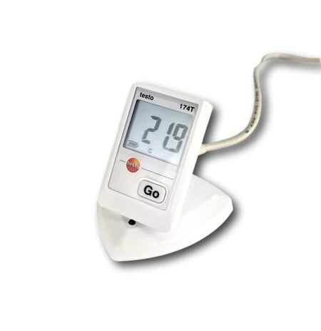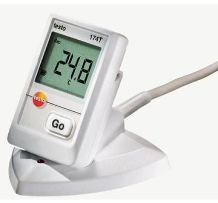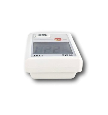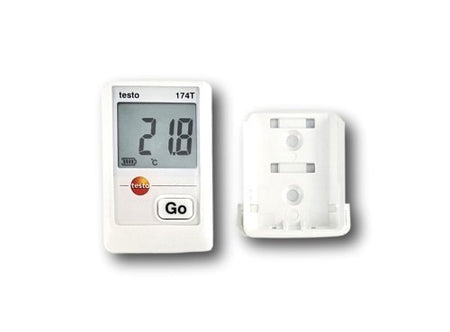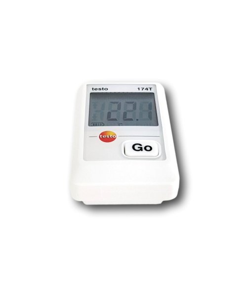 The testo 174T mini data logger for temperature has a memory capacity of up to 16?000 readings. Saved measurement data will not be lost even when the battery is empty or being replaced. You can easily see the current reading shown on the large display, along with any possible violations of limit values. The temperature sensor which is integrated into the data logger is an NTC sensor with a high level of accuracy. The temperature data logger`s measuring range goes from -30 to +70 C. It is therefore fine to use at very low temperatures as well and is for instance suitable for temperature control in refrigerators or cold stores.