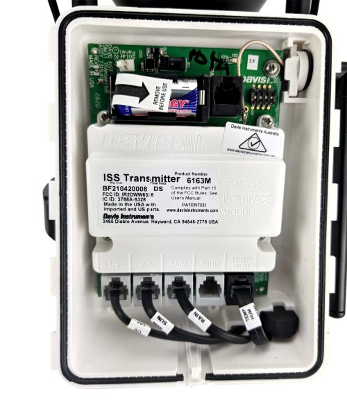 All Davis Instruments wireless stations that we supply have had their wireless frequency spectrum physically changed by an approved Davis technician to meet Australian legal frequency standards. The use of wireless equipment that do not comply with Australian standards is illegal.
