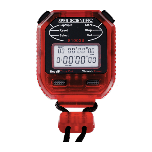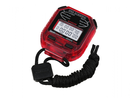 Counts up or down for 10 hours in intervals of 1 second. In count down mode unique feature tells you how much time has elapsed after the alarm sounds. Memory allows repeat of just completed cycle. Alarm clock mode. Has a built-in stand, pocket clip, and magnet. A button cell battery is included. N.I.S.T. traceable Calibration Report available.