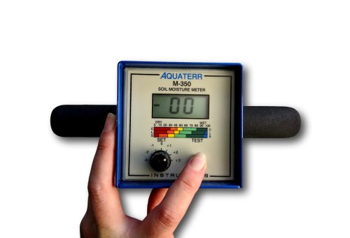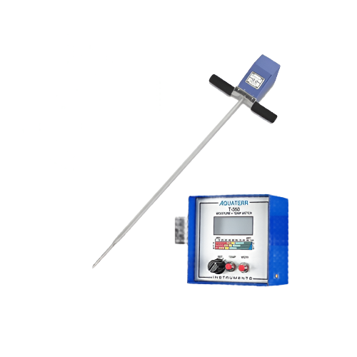 The Aquaterr IC-M-350 portable soil moisture measurement instruments are widely used in rugged environments and are built to withstand industry abuse. The super strong 30-inch aircraft grade stainless steel probe houses the sensors that measure soil moisture content. A weatherproof cast aluminum enclosure houses the electronics and the easy to read display.