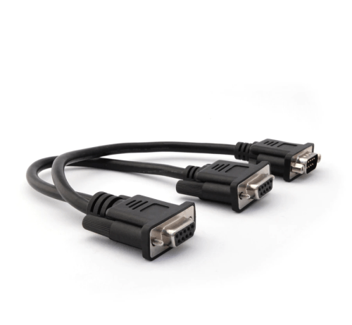 This low cost DB9 (D-sub 9) Y-splitter cable lets you easily split a single CAN bus DB9 connector into two connectors. This is achieved via the quality over molded male-to-female/female DB9 connectors.