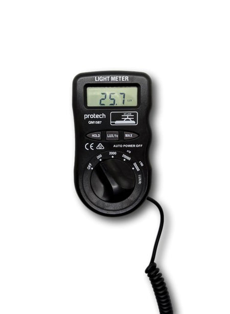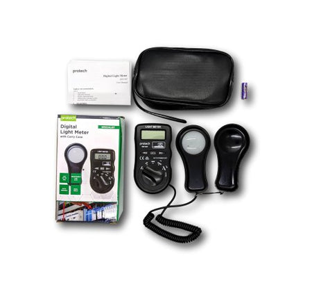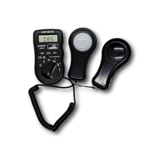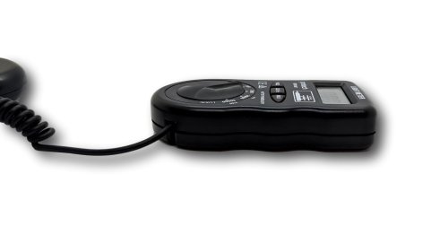 A handy digital light meter for photography, lab work, architectural, engineering and construction applications. It includes an integrated stand and will measure incident light in 3 ranges: 0.1 to 200, 200 to 2,000, 2,000 to 20,000 and 20,000 to 50,000 lux. The photo detector is wired on a curly cord which extends to 1 metre, allowing the user to take light measurements at the optimum position. Sensor cover included.