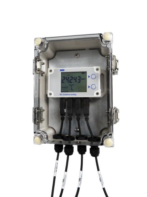 The HOBO MX1105 multi-channel data logger, with four-channel inputs, measures and transmits data wirelessly from a variety of sensors to your mobile device via Bluetooth Low Energy (BLE) technology, so you don't even need to open the lid to start the logger.