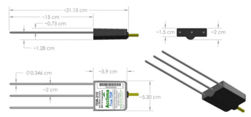 The TDR-315L is a true Time Domain Reflectometer system (minus the coaxial cable) wrapped up in a small, rugged, permanently installable package. This model uses half the power yet it sacrifices none of the accuracy of its big brother the TDR-315. Acclima True TDR technology is a major, patented breakthrough in soil water and EC measurement technology.