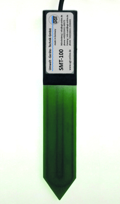 The SMT-100 determines the volumetric water content and the soil temperature. It has a broad measurement range, it is maintenance free and frost resistant. With a short response time and low disturbance by salinity it is designed for a long-term observation. Additionally, it is possible to retrieve the relative Permittivity.