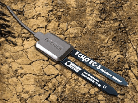 The EC-5 is used to measure volumetric moisture content of soils and other material for scientific research and agricultural applications. The EC-5 measures volumetric water content via the dielectric constant of the soil using capacitance technology. The sensor uses a 70 MHz frequency, which minimises salinity and textural effects, making it an ideal sensor in agricultural and standard scientific projects.