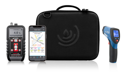 The Tramex Flooring Installation Quick Check Plus Kit includes the Concrete Moisture Encounter X5 - CMEX5, the Infrared Thermometer - IRT2, and comes in a Tramex Easy-travel case.
