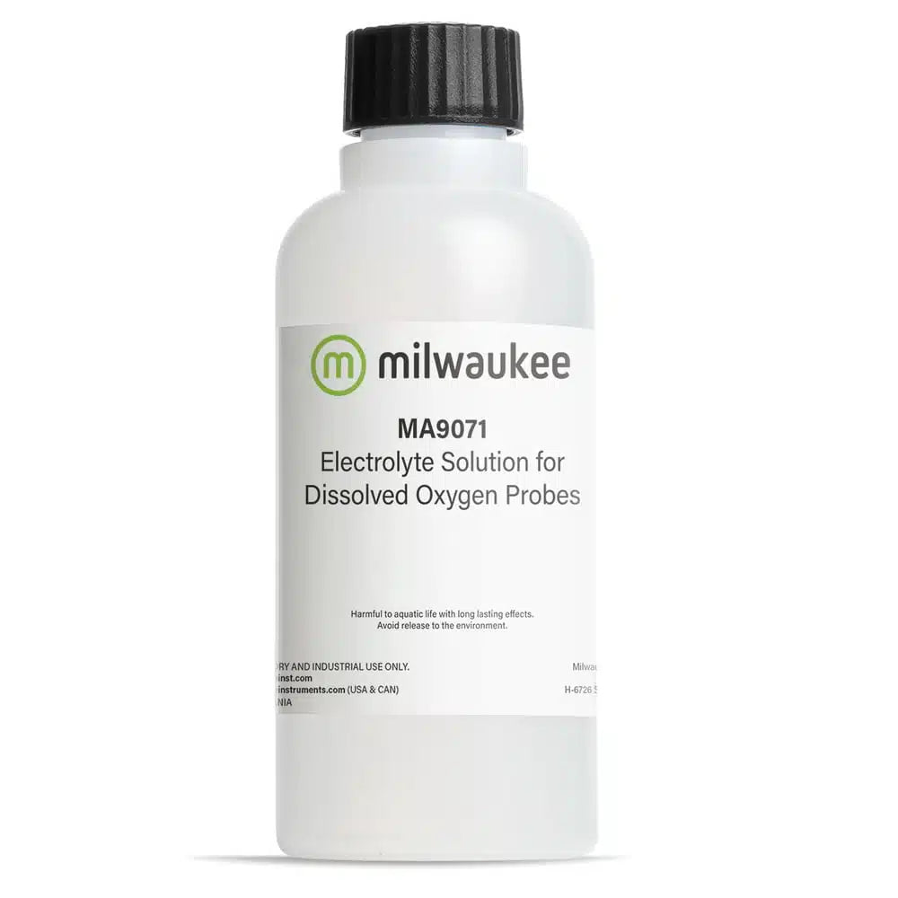 The MA9071 electrolyte fill solution is designed for Milwaukee's polarographic dissolved oxygen probe. A high quality electrolyte solution is crucial to the performance of your dissolved oxygen probe.