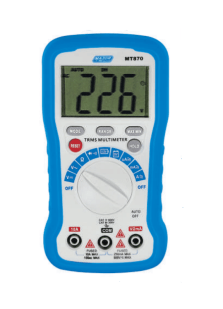 -Measures AC and DC voltage up to 600V and AC and DC current up to 10A.