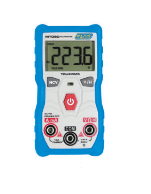 The MTD80 is a compact True RMS auto ranging multimeter with a 4000 count LCD backlit display that automatically identifies DC voltage, AC voltage, Resistance and continuity buzzer and automatically displays the measurements.