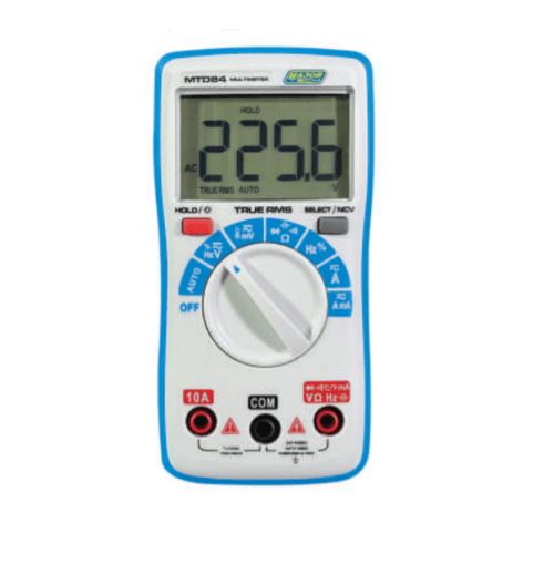 The MTD84 is a True RMS auto ranging, compact multimeter with a 6000 count LCD backlit display.