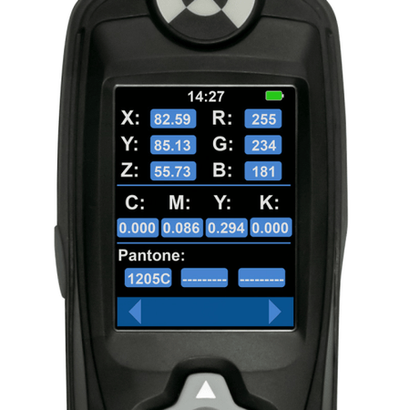 -Readings can be displayed in LAB, XYZ, RGB or Pantone.