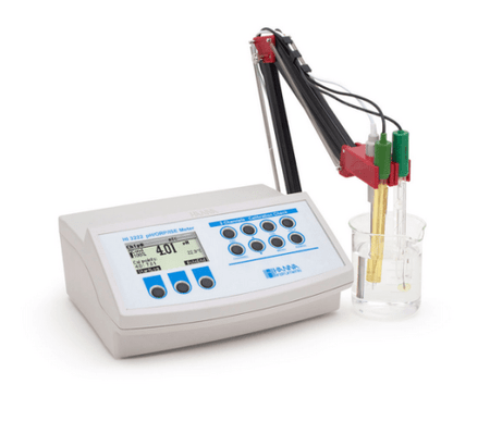 As a pH meter the HI3222 can be calibrated up to five points with a choice of seven standard buffers or five custom buffers. For use as an ISE meter, a five-point calibration with six standard buffers can be performed. All GLP data regarding pH, ISE, and relative mV calibration is stored for the user to review when necessary.