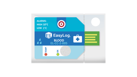 The EL-CC-2-005 PK10 Blood Shipments data logger measures and stores both temperature and humidity information. The unit comes pre-configured with High 10 C, Low 1 C Alarms - simply press the button to start logging.