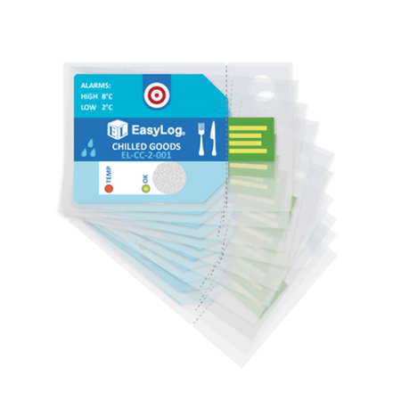 The EL-CC-2-001 PK10 Chilled Goods data logger measures and stores both temperature and humidity information. The unit comes pre-configured with High 8 C and Low 2 C Alarms - simply press the button to start logging.