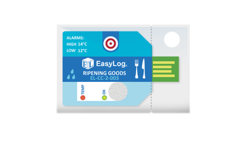 The EL-CC-2-003 PK10 Ripening Goods data logger measures and stores both temperature and humidity information. The unit comes pre-configured with High 14 C, Low 12 C Alarms - simply press the button to start logging.
