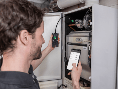 With the testo 316i gas leak detector, you can locate leaks easily and precisely. The acoustic and visual alarm via the multicolor LED on the sensor head and the self-explanatory bar scale ensure simple leak detection.