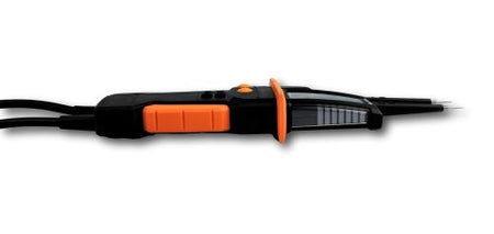 The testo 750-3 voltage tester is the most innovative voltmeter on the market. The clear all-round LED display with fibre-optic technology for ideal voltage indication can easily be read in any position. A second LC display also indicates the current reading. An anti-slip ring and the ergonomic shape of the handle also ensure you can work comfortably. The integrated torch helps with the illumination of dark measuring points. And the voltage tester is extremely durable thanks to the robust housing.