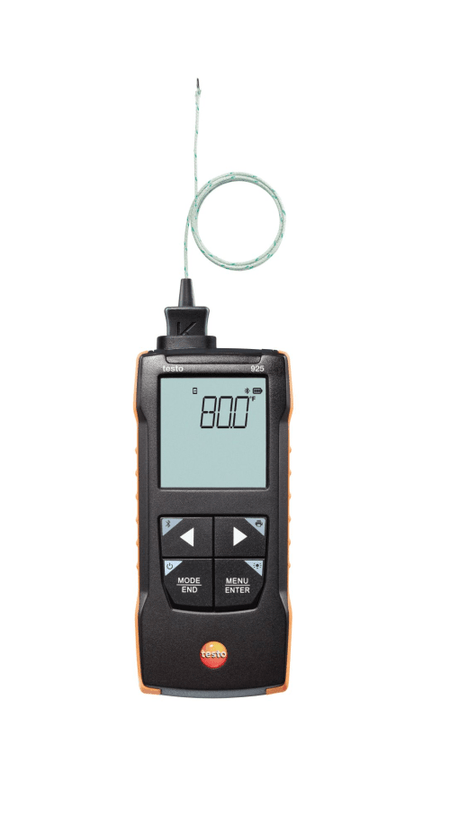 With the compact temperature measuring instrument testo 925 (TC Type K, 1 probe included), you have the versatile solution for simple, fast and precise temperature measurements in industry and trade. The testo Smart App supports you with useful functions such as configuration, display (also as second screen) and storage as well as documentation of the measured values directly in the App.