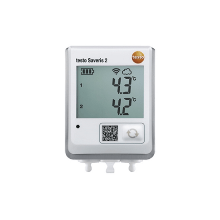 Testo Saveris 2-T2; WiFi data logger (wireless LAN) with display, for measuring temperature, two connections for external NTC temperature probes or door contacts,i ncl. USB cable, wall bracket, batteries.and calibration protocol.