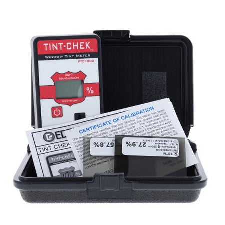 The TC1800 Tint-Chek window tint meter measure visible light transmittance (VLT) of automotive glass as well as any glass/film up to 1/4" or 6.5mm thick. The meter is perfect for checking the legality of tint applied to automotive windows.