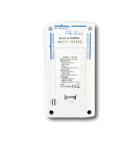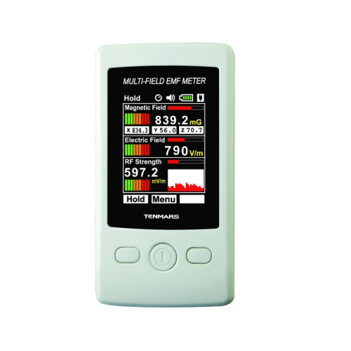 The Tenmars TM-190 is a three axis magnetic field measuring device (Gauss Meter), with 3-channel internal measurement sensors(X,Y and Z) which enhance reliable measurements and monitoring of low frequency Electromagnetic Field strength, an Electric Field Meter, used for measuring low frequency electric fields and a RF Field Strength Meter, operating at frequencies from 50Mhz to 3.5 Ghz making it suitable as a microwave leakage detector as well as for other RF emitting equipment.