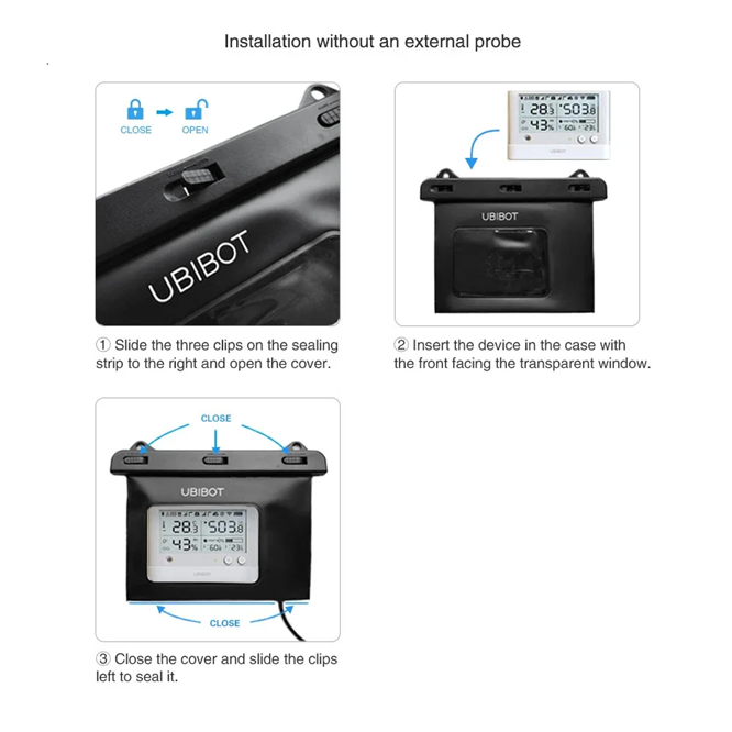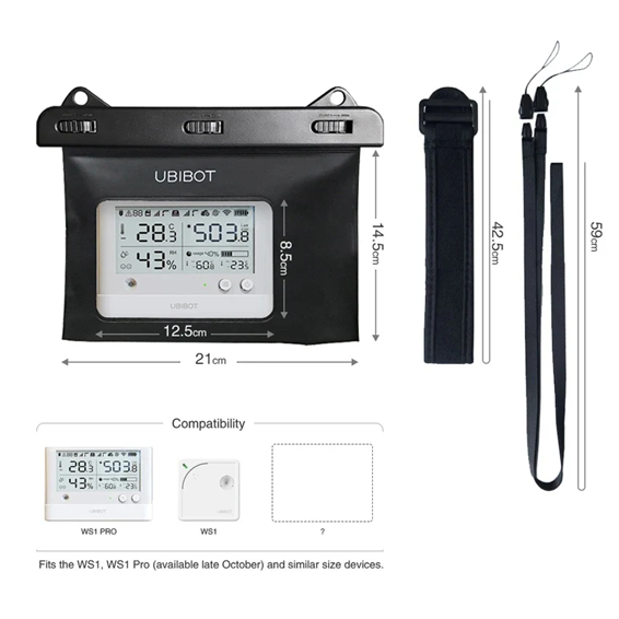 Water resistant case for Ubibot devices for outdoor use. Protects against light rain, spray or dust.