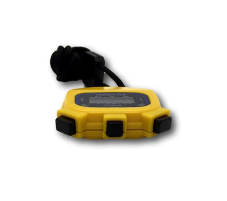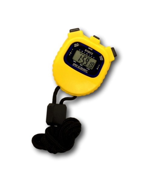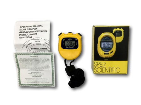 Counts up to 24 hours in 1/100th second resolution for the first 30 minutes with a 1 second resolution thereafter. Split interval function. Also has a 12/24 hour alarm clock, calendar, LCD display, and an hourly chime option. N.I.S.T. traceable certificate of compliance available.