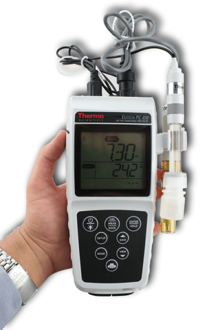 PC 450 accepts a single pH/Con probe or separate pH and conductivity probes