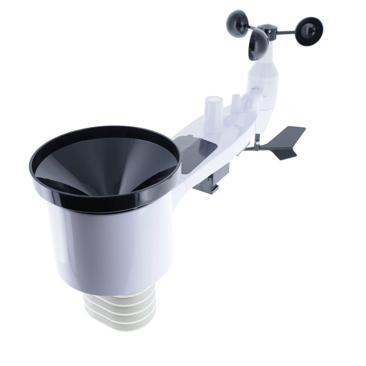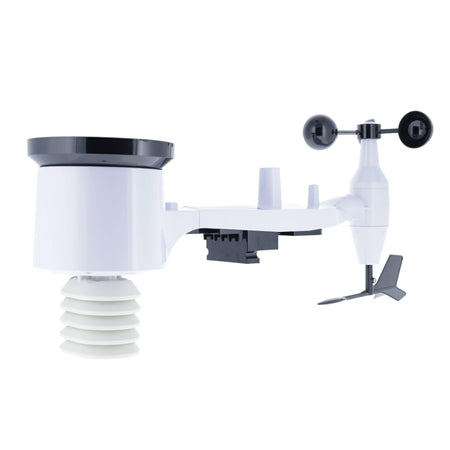 - Wireless Outdoor Solar Powered 7-in-1 Weather Sensor measures temperature, humidity, wind speed, wind direction, rainfall, light and UV.