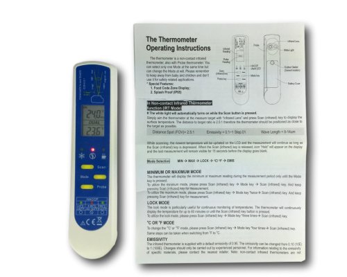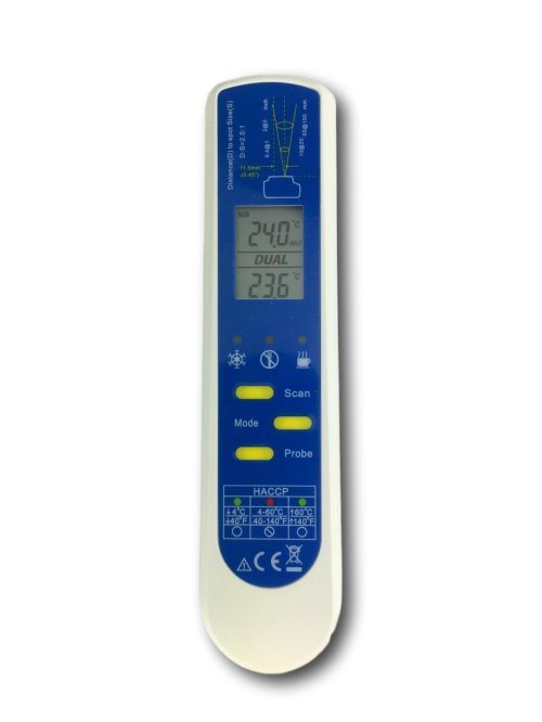 The Food Grade Dual Infrared is an easy to use thermometer for measuring the temperature of food. With its built-in probe, this thermometer is the perfect item for those who need to know the exact temperature of the item that they are cooking.